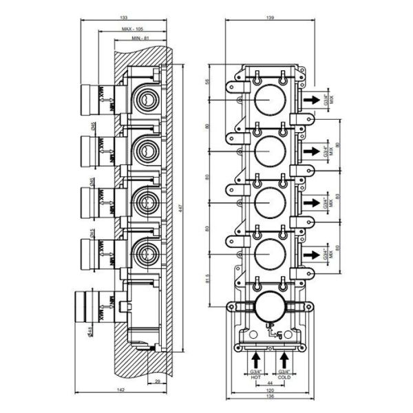 Скрытая часть Gessi для встраиваемого термостата на 4 независимых выхода в цвете хром - это идеа... Подробнее