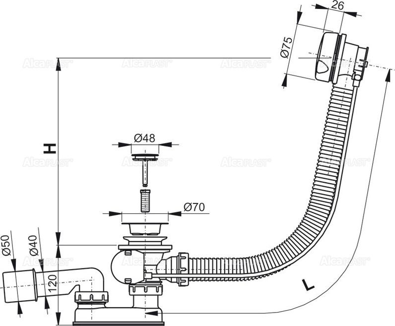 Слив-перелив для ванны AlcaPlast пластик-металл 57см белый A51B