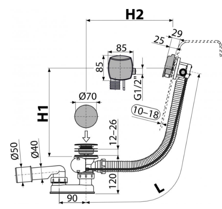 - Для слива воды из ванны в канализационный сток