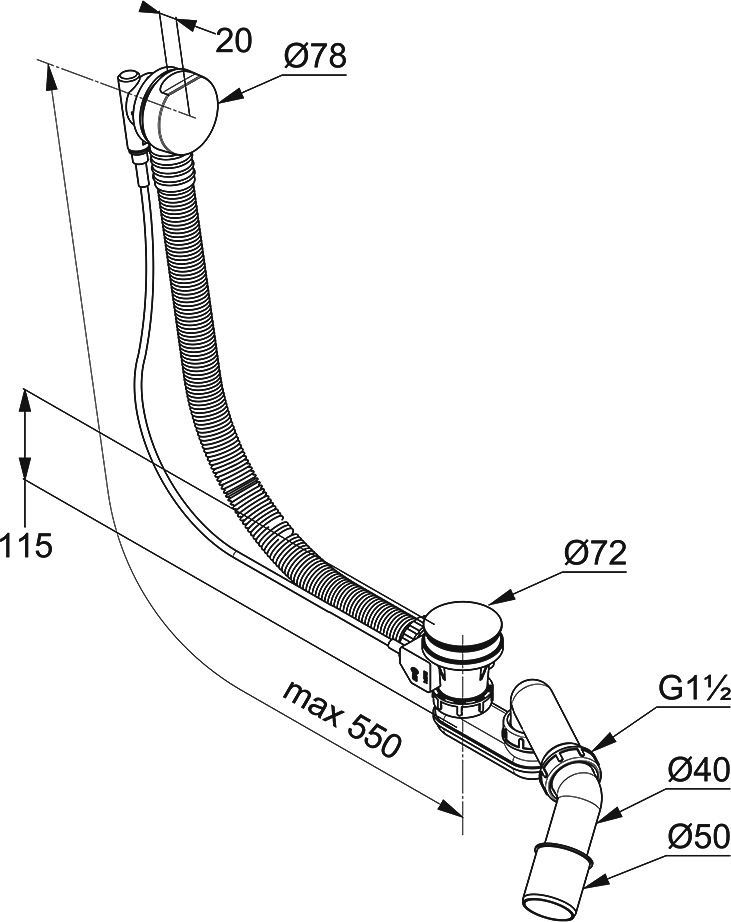 • с гибкой переливной трубой