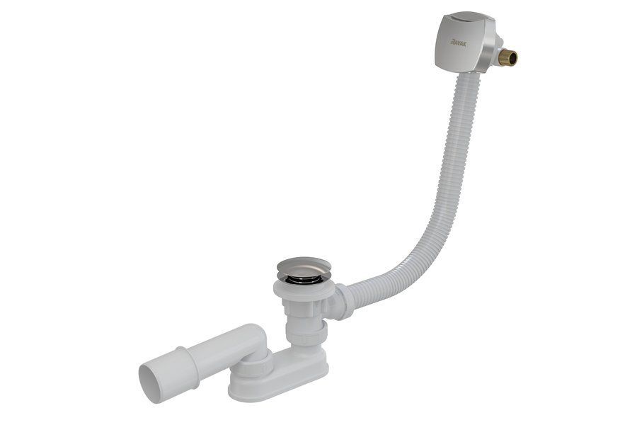 Вы можете выбрать сточный комплект для ванны с переливом длиной 570 мм или 800 мм с управлением сливом при помощи тросика или механизмом ClickClack. В состав каждого сточного комплекта входит сифон