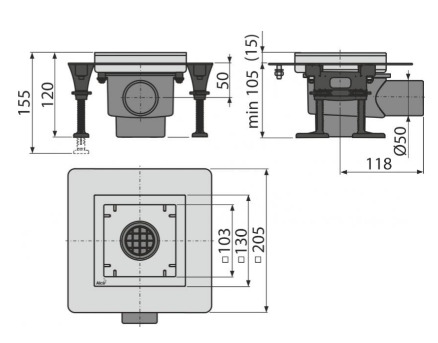 Сливной трап AlcaPlast 130?130мм из нержавеющей стали без решетки APV130 купить