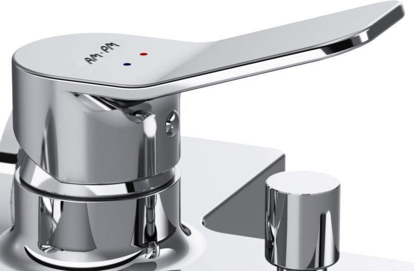 AM.PM керамическим картриджем SoftMotion 35 мм, который обеспечивает оптимальную регулировку температуры, а также позволяет выдерживать любые перепады давления.Корпус смесителя X-Joy изготовлен по принципу цельного литья из латуни. Покрытие Everlast – вдвое превышает отраслевые стандарты по прочности и износостойкости. Ювелирный блеск и прочность покрытия достигаются по стандарту Chrome plating standard NSS 80H. В комплекте душевой набор: стильный ручной душ 110 мм 1 режим, настенный держатель с регулировкой угла наклона, душевой шланг с защитой от скручивания.