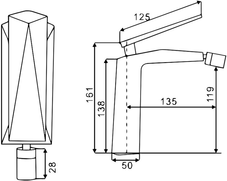 • Высота смесителя: