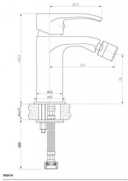 Смеситель для биде, гибкая подводка G3/8", картридж на керамических дисках, металлическая рукоятка с индикаторами горячей/холодной воды, аэратор на шаровом шарнире