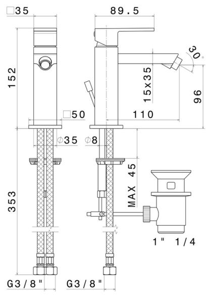 Смеситель однорычажный для биде с донным клапаном 1"1/4. Соединение 3/8" Подробнее