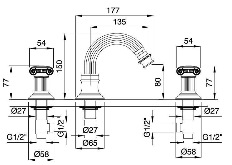 Смеситель для биде на 3 отверстия Cezares OLIMP-BBS2-01-O купить