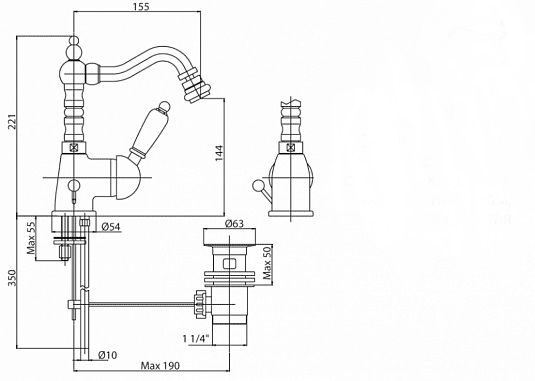 Смеситель для биде однорычажный, хром Cezares ELITE-BSM2-01-Bi