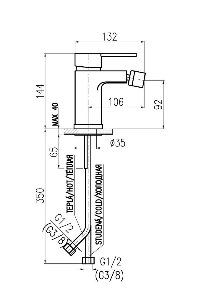 • Высота смесителя: