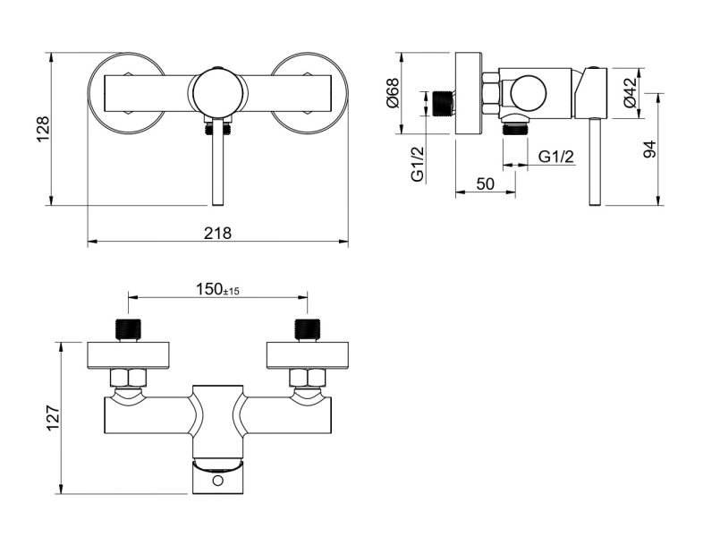 • Однорычажная система регулировки силы струи и температуры воды