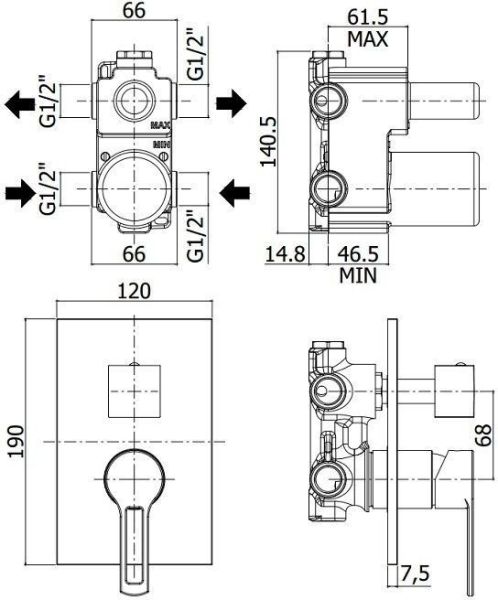 Смеситель встраиваемый для душа на 2 выхода с накладкой нерж сталь 120х190мм.девиатор-картридж, 2 положения+1 комбо, Белый матовыйСмеситель для душа Paffoni Ringo RIN018BO/M (с внутренней частью) предназначен для душа. Своим модернистским дизайном и цветом он внесет в интерьер помещения особое настроение, подчеркнув его своеобразие. Он выполнен из надежного материала латунь/Нержавеющая сталь, который не окисляется, а потому прослужит долго. Изделие является отличным примером достойного качества. Управление в смесителе предусмотрено однорычажное, что удобно для любителей такого типа смесителей. Высокую надежность и основательность смесителю гарантирует керамический картридж, безусловным плюсом которого является проработанная конструкция - залог четкой работы в течение долгого времени. Не напрасно гарантия на смеситель – 5 лет, в течение которого компания Paffoni заверяет в его бесперебойной работе. Форма излива в смесителе - нет, а тип - нет. При покупке учтите, что подводка у смесителя жесткая, что важно для его подключения.