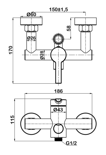 Смеситель для душа с верхним подключениемКерамический картридж Sedal.Эксцентрики и декоративные накладки.Гигиенически стабильная латунь с высоким содержанием меди.Цвет: черный