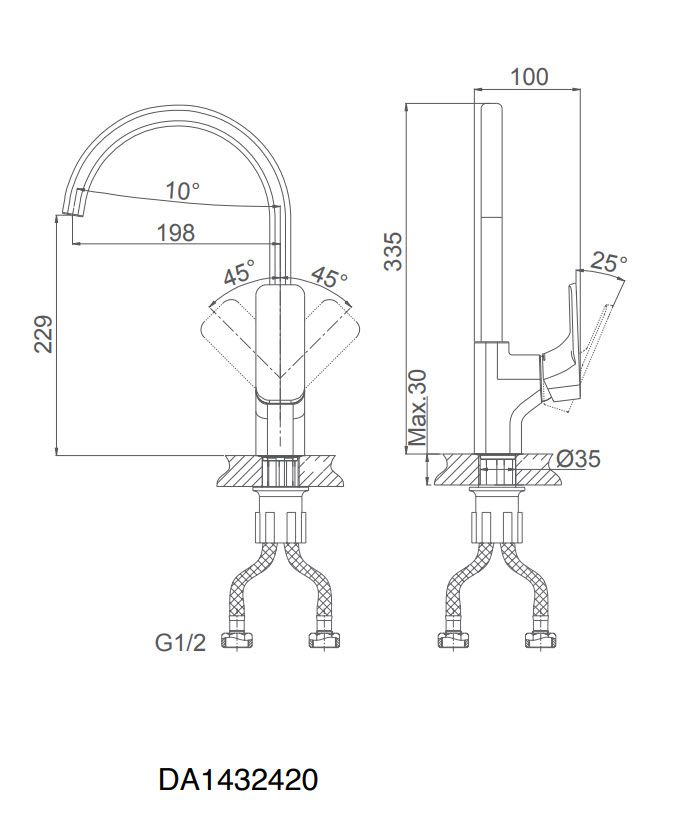• Высота смесителя: