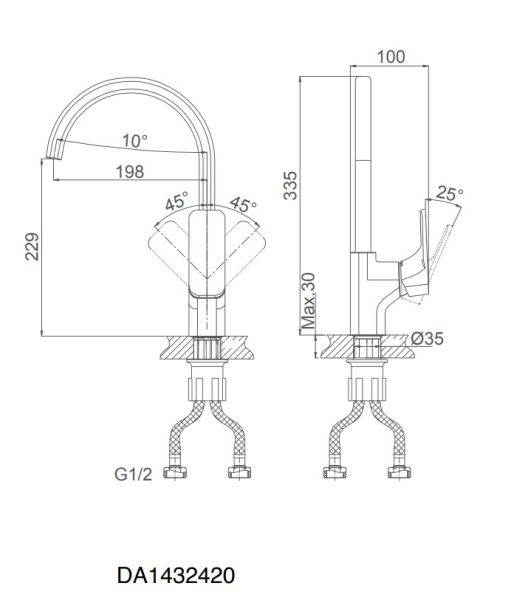 Смеситель высокий для кухни DQ Berlin DA1432420 Berlin - тщательно проработанный дизайн с выборо... Подробнее
