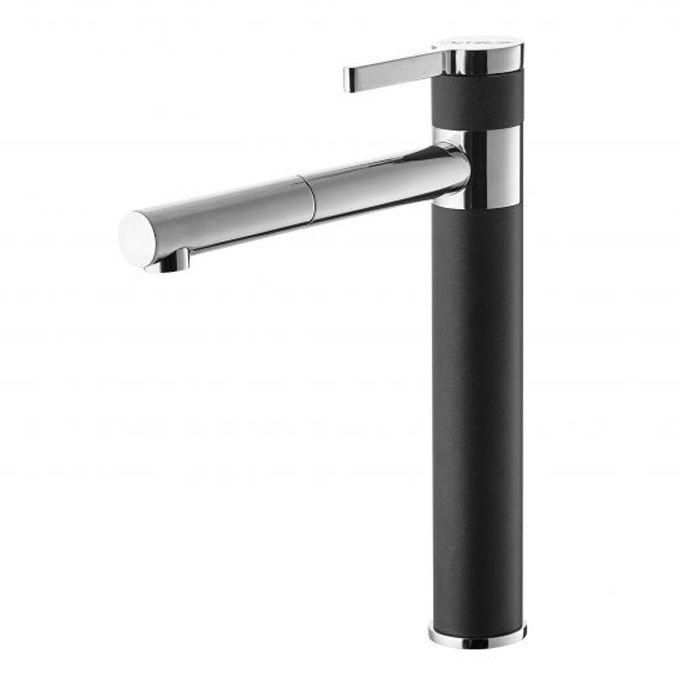 Смеситель для кухни Alveus Zina 1129061 черныйВысококачественный смеситель для кухни от Alveus - ведущего производителя оборудования для кухни в Восточной Европе. Опыт производства техники для кухни с 1954 года. Высокий поворотный излив смесителя помогает облегчает мытье посуды. Выдвижной излив позволяет не только помыть посуду, фрукты или наполнить кастрюлю водой, но и облегчает уход за кухонной мойкой, позволяет наполнять водой крупные емкости, которые не помещаются в мойку. Высокопрочное гальваническое хромированное покрытие подойдет к любому дизайну. Натуральные оттенки смесителя из палитры GRANITAL позволяют идеально сочетать кухонную мойку и смеситель. Долговечный керамический картридж с пониженным уровнем шума. Высокотехнологичный блок аэратора.