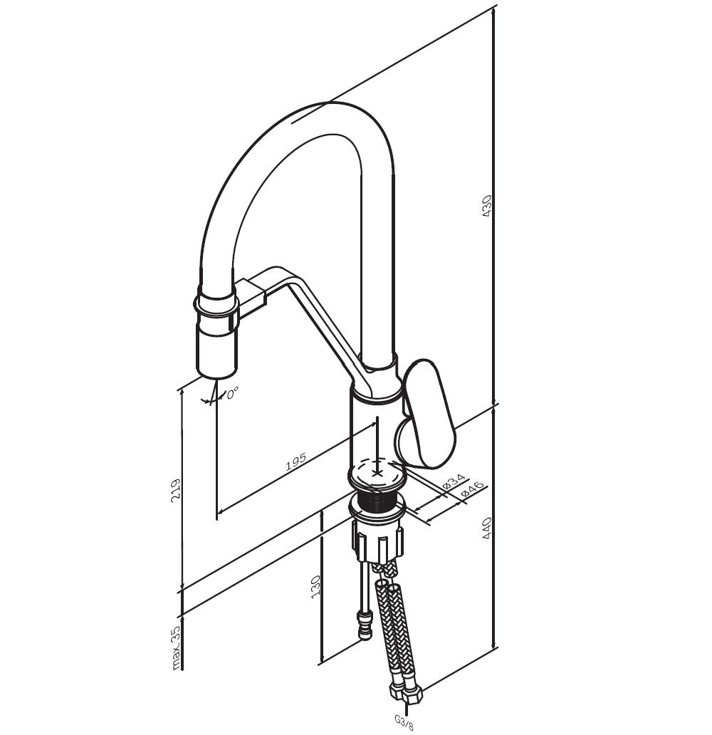 • Высота смесителя: