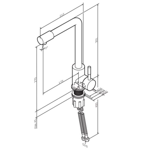 • Высота смесителя: