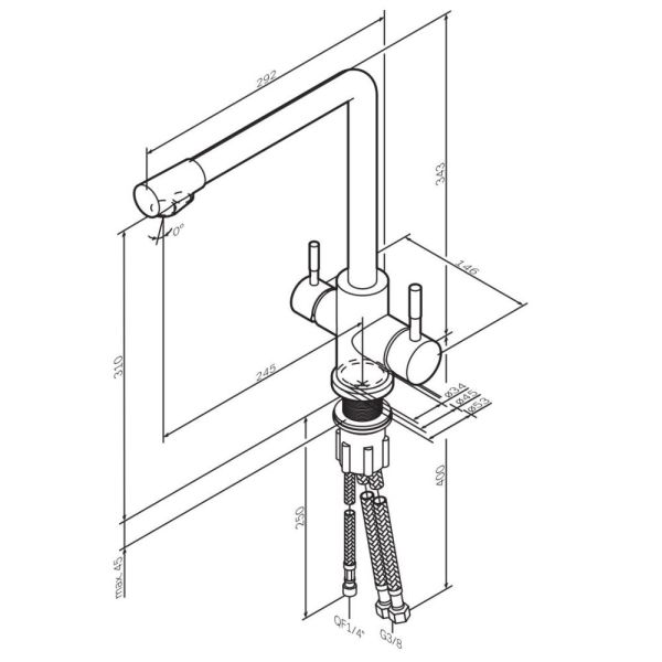 Смеситель оснащен встроенным каналом для питьевой воды. Для получения питьевой воды воспользуйтесь ручкой, расположенной с левой стороны корпуса, для получения обычной воды, просто управляйте смесителем привычным способом.