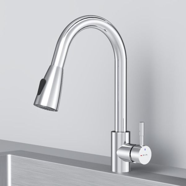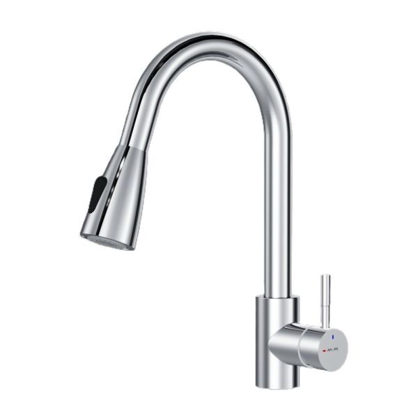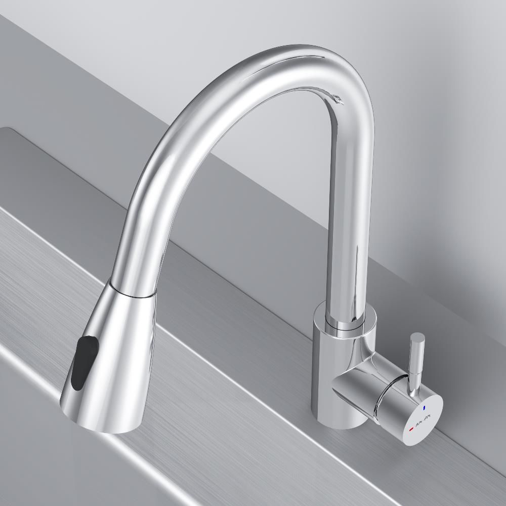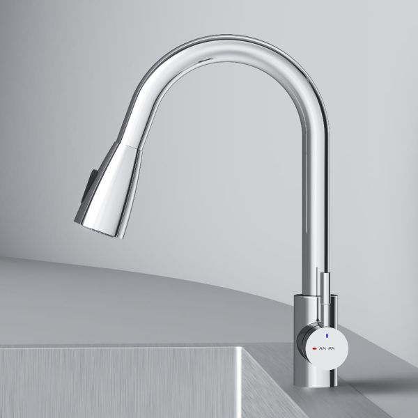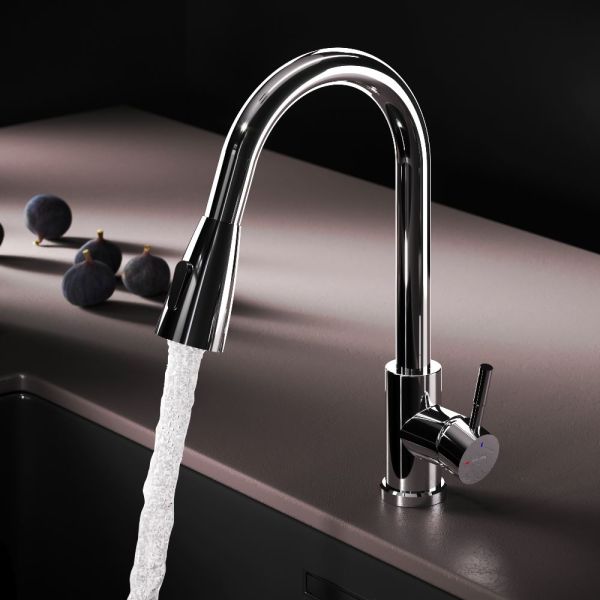 Смеситель оборудован вытяжным гибким изливом, который позволит с легкостью справится с такими задачами, как мытье раковины, наполнение больших емкостей и мытье овощей и фруктов. В зависимости от задачи вы можете легко переключаться между обычным потоком воды и режимом «душ».
