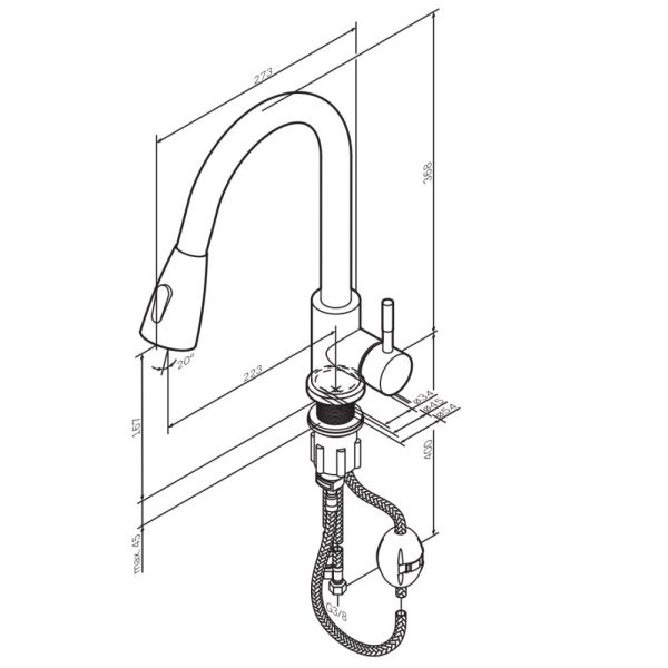 • Высота смесителя: