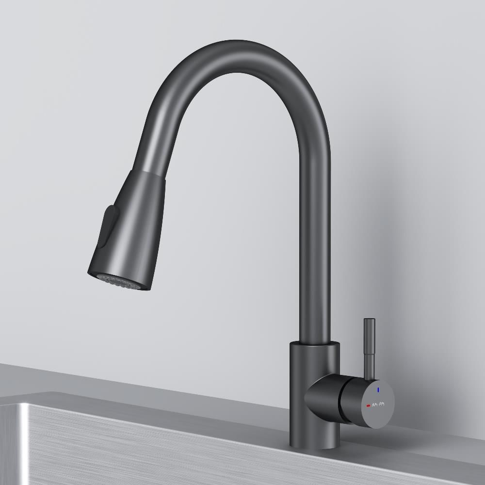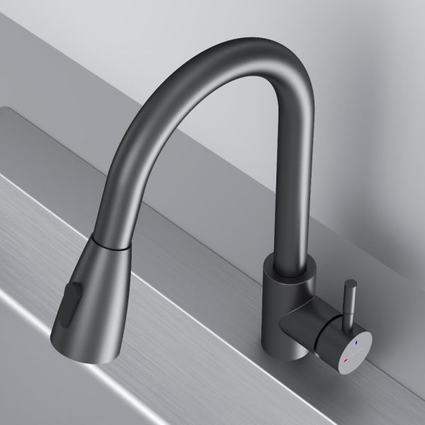 Смеситель оборудован вытяжным гибким изливом, который позволит с легкостью справится с такими задачами, как мытье раковины, наполнение больших емкостей и мытье овощей и фруктов. В зависимости от задачи вы можете легко переключаться между обычным потоком воды и режимом «душ».