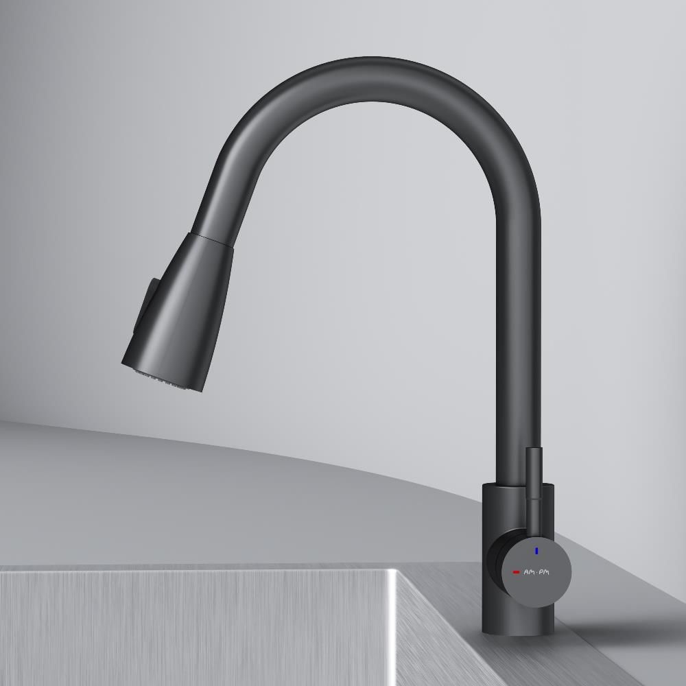 Смеситель для кухни Am.Pm X-Joy S F85B07522 с выдвижным изливом чёрный