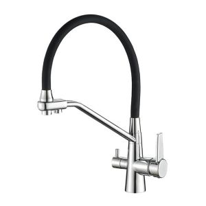 Смеситель для кухни Aquanika Comfort AQC013CRBL изготовлен из высококачественной латуни и оснащен поворотным гибким изливом. Также смеситель оснащен отдельным изливом для питьевой воды. Высота обоих изливов  (когда гибкий излив установлен в крепление) 207 мм. В комплекте идет гибкая подводка с подключением 1/2" и комплект крепежа необходимый для установки изделия.
