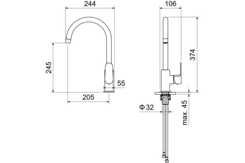 • Гибкий излив: