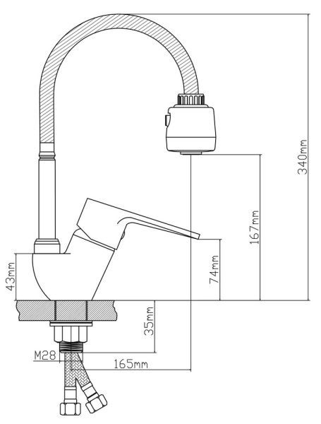• Высота смесителя: