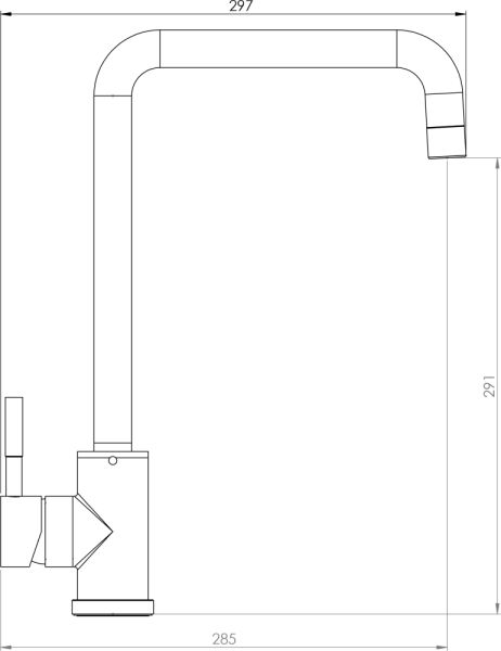 При вращении ручки на 90 градусов - чистая вода из фильтра.Если же нужна обычная вода, смеситель управляется привычным способом.Экономит место и придаёт кухне опрятный вид без лишних элементов.Керамический картридж Damixa Light Flow 35 мм.