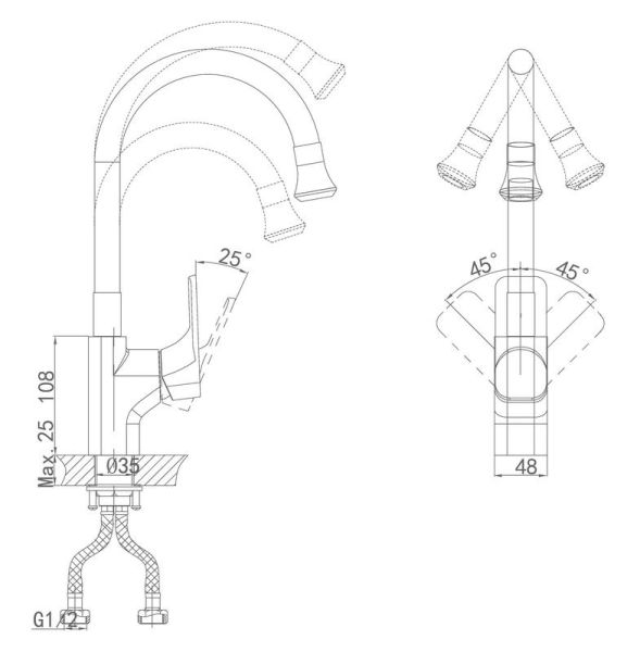 Высота смесителя:36