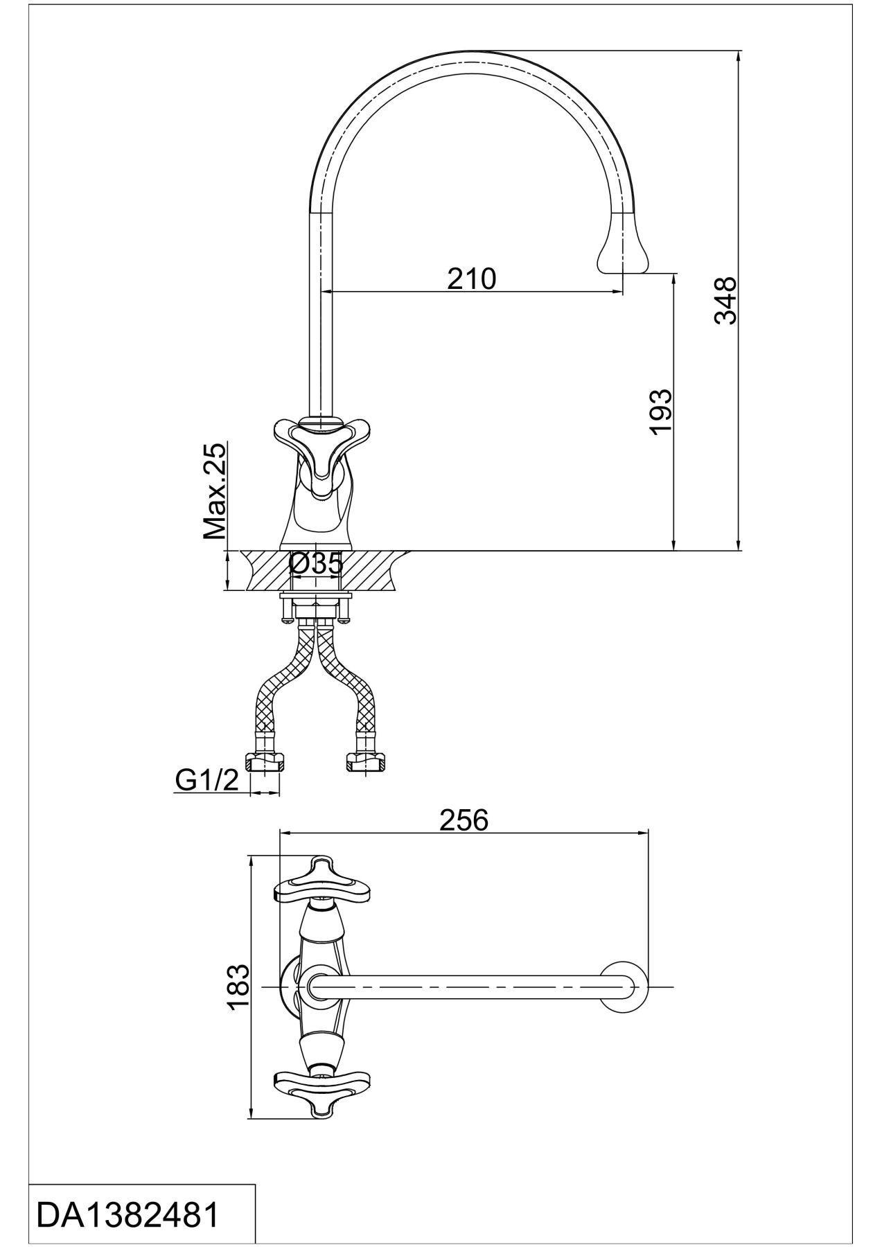 • Высота смесителя: