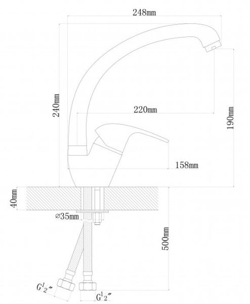 • Высота смесителя: