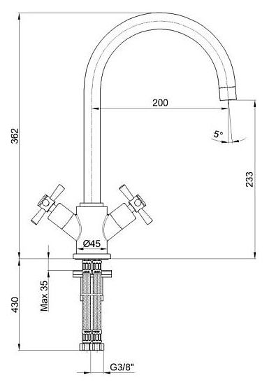• Высота смесителя: