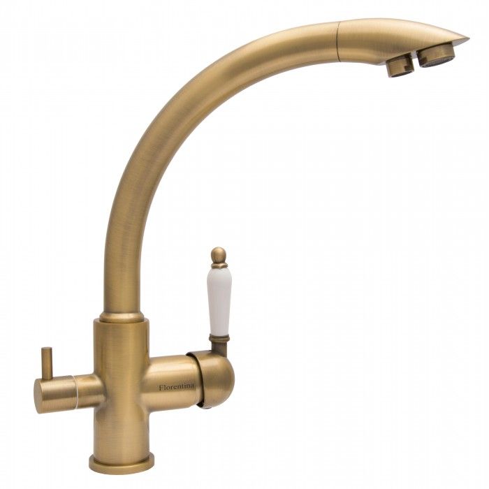 Смеситель для кухни Florentina Шале с подключением под фильтр бронза купить