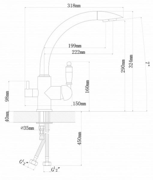 Смеситель однорычажныи? с подключением к фильтру питьевои? воды.