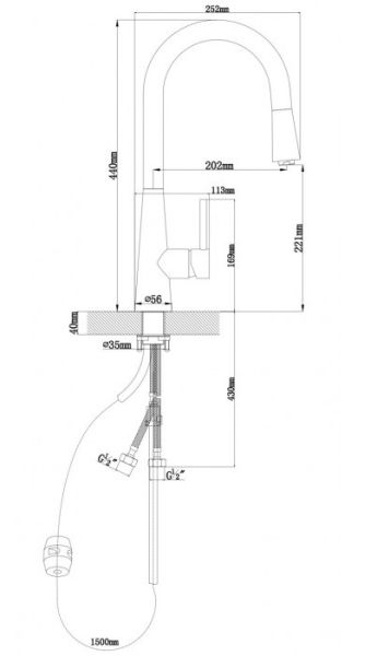 • Высота смесителя: