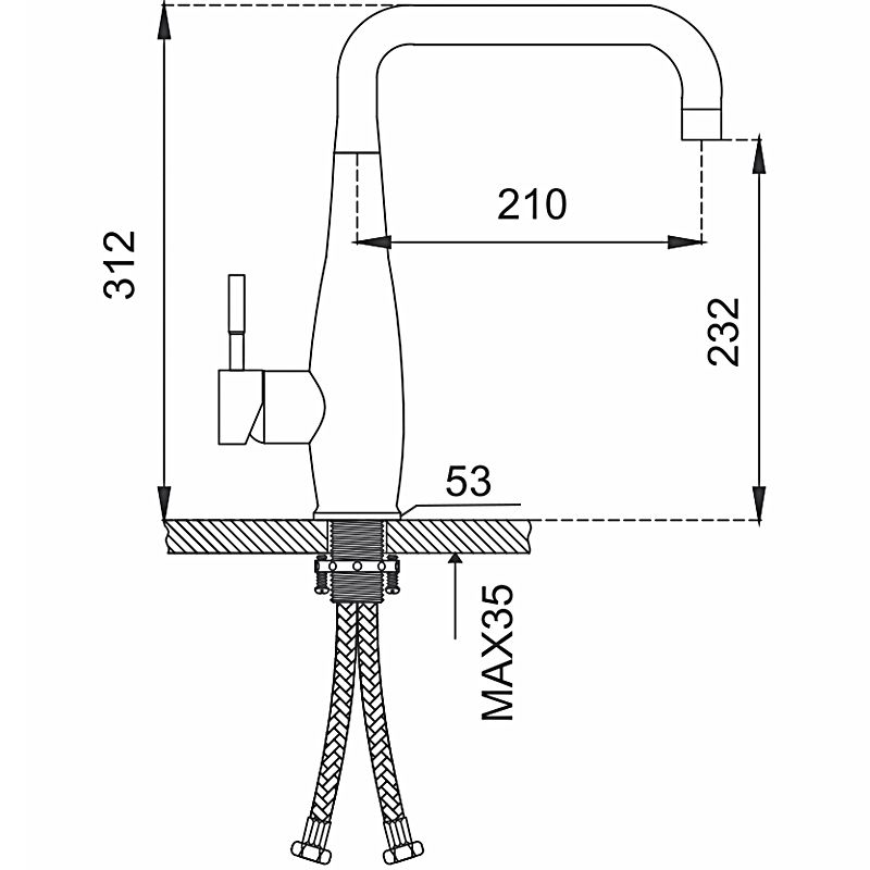 • Высота смесителя: