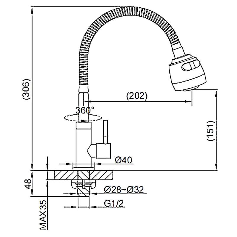 • Высота смесителя: