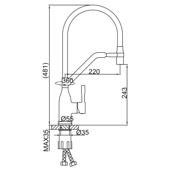 • Гибкий излив: