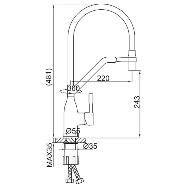 • Гибкий излив:
