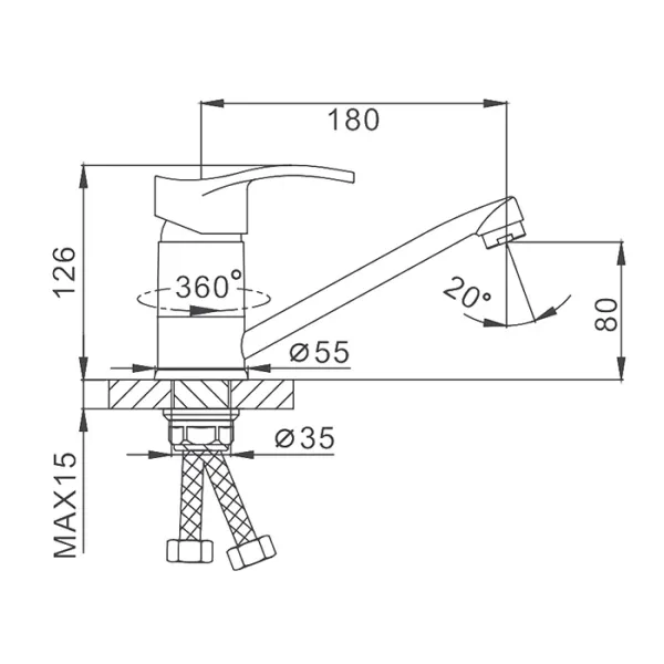 • Высота смесителя: