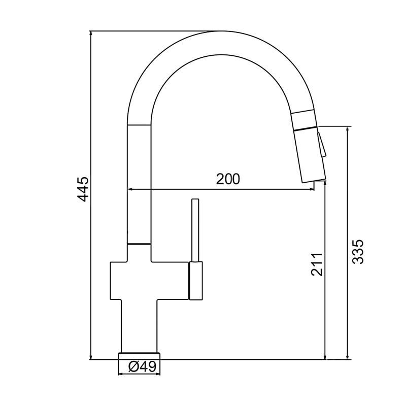 • Высота смесителя: