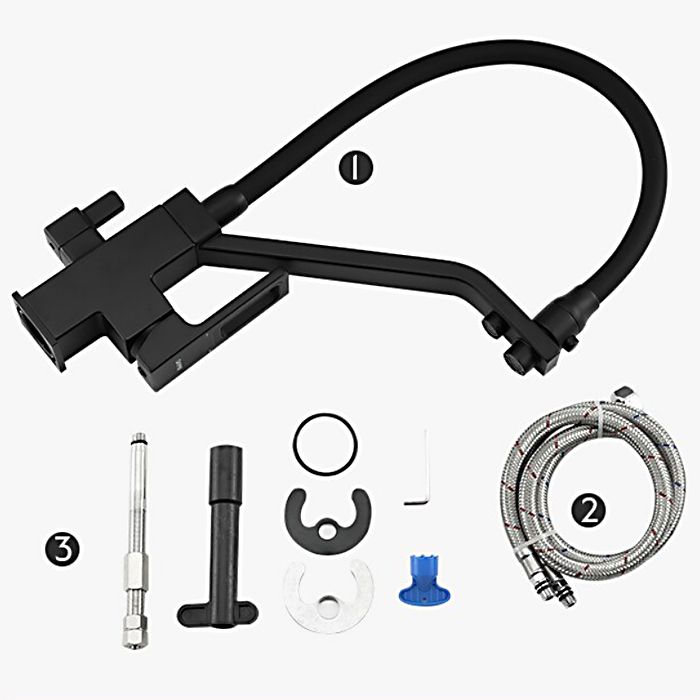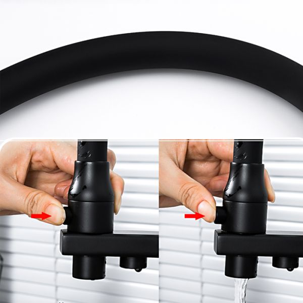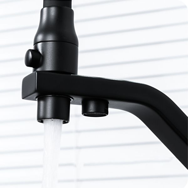 Смеситель для кухонной мойки Gappo G4317-6 с подключением фильтра питьевой воды - стильная и функциональная однорычажная модель в трендовом черном цвете, оснащена гибким изливом и двумя рычажками: компактный рычажок предназначен для подачи воды из-под фильтра, а второй рычаг отвечает за регулировку потока водопроводной воды. Имеет керамический картридж 35 мм. Цвет - черный.