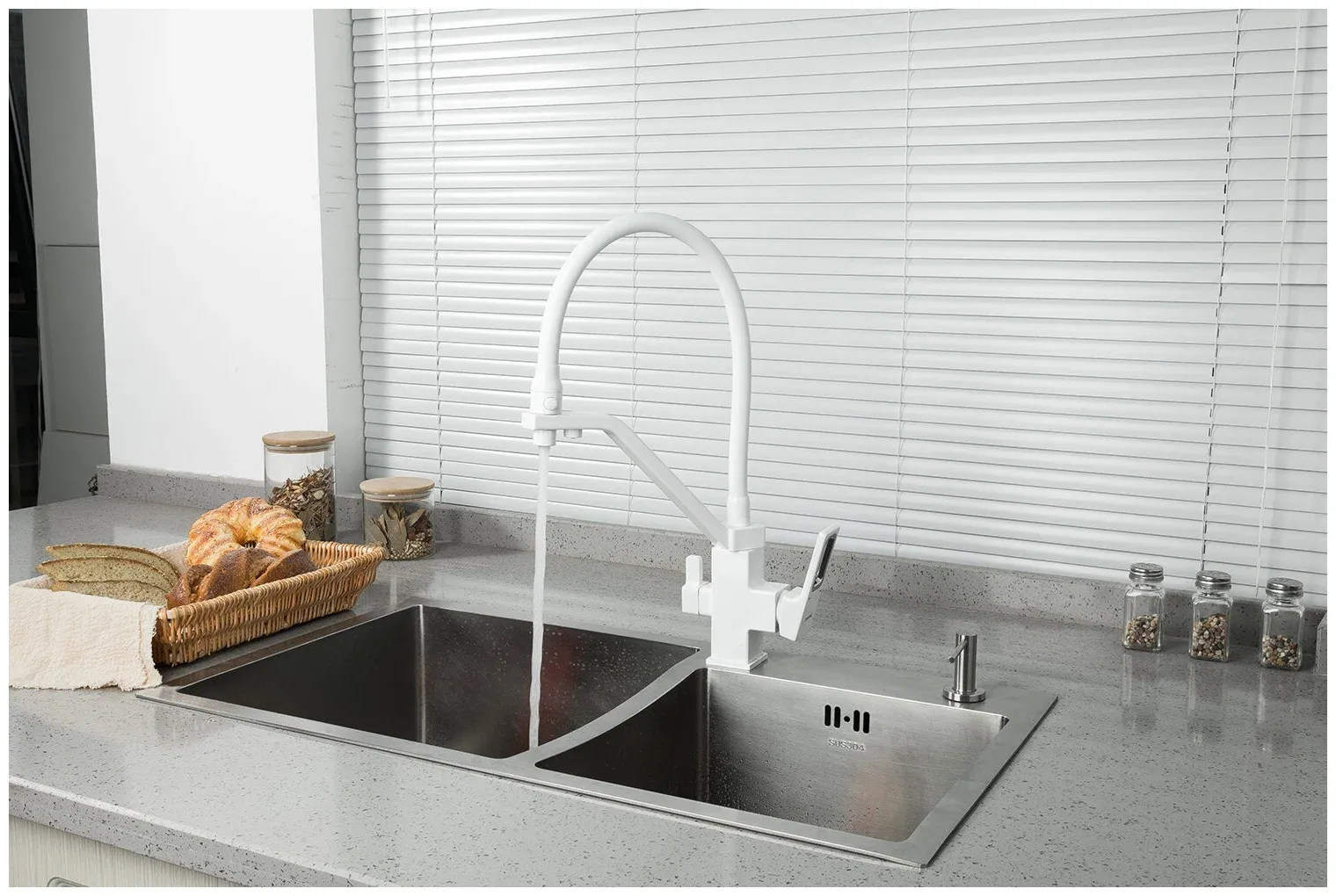 Смеситель для кухни Gappo G4317-8 со встроенным фильтром под питьевую воду белый/хром купить