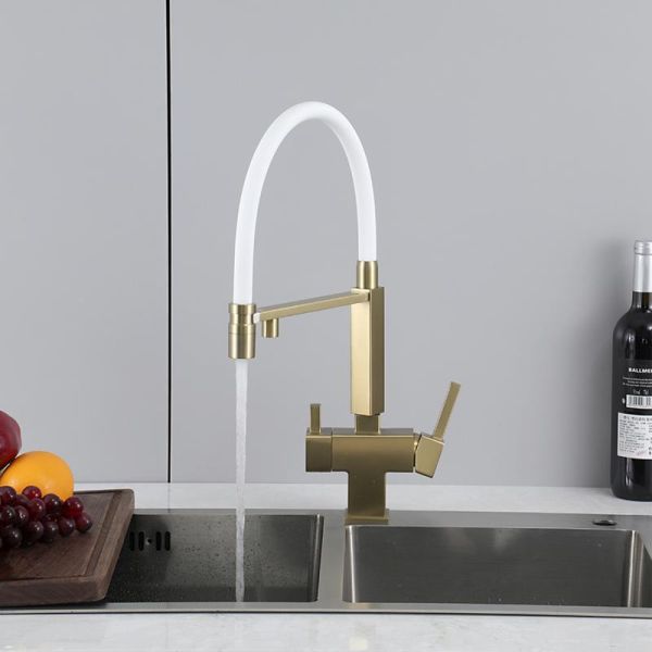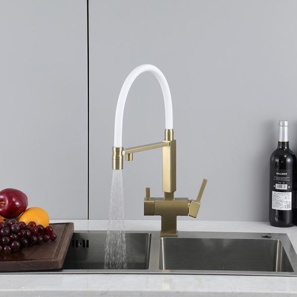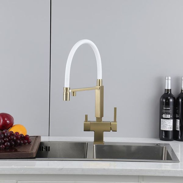 Смеситель для кухни Gappo G4395-53 с подключением фильтра питьевой воды и гибким изливом золото/белый