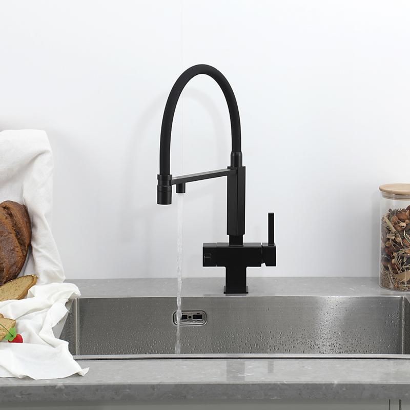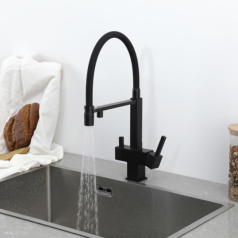 Смеситель для кухни Gappo G4395-56 с подключением фильтра питьевой воды и гибким изливом чёрный купить