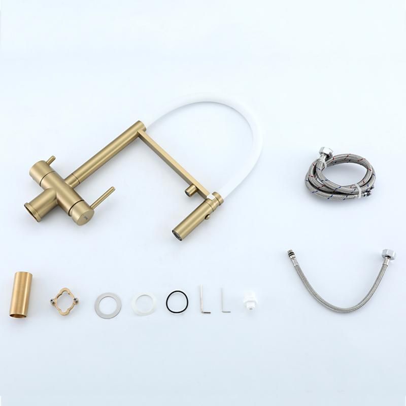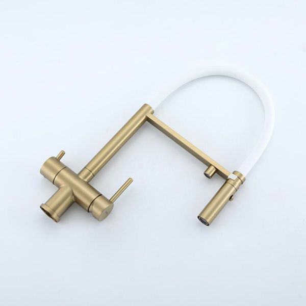Смеситель для кухни Gappo G4397-83 с подключением фильтра питьевой воды и гибким изливом золото/белый