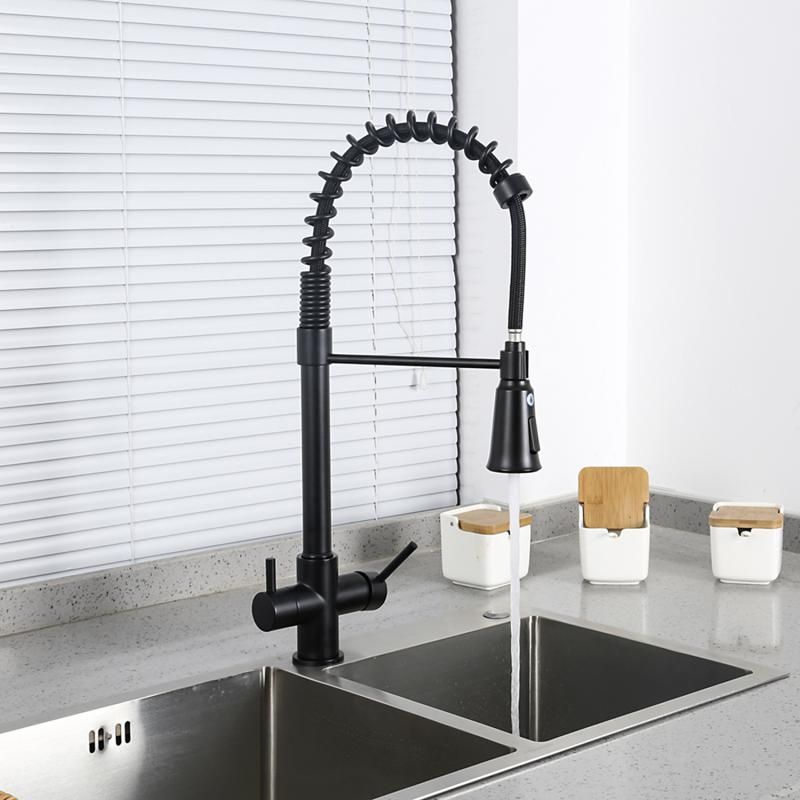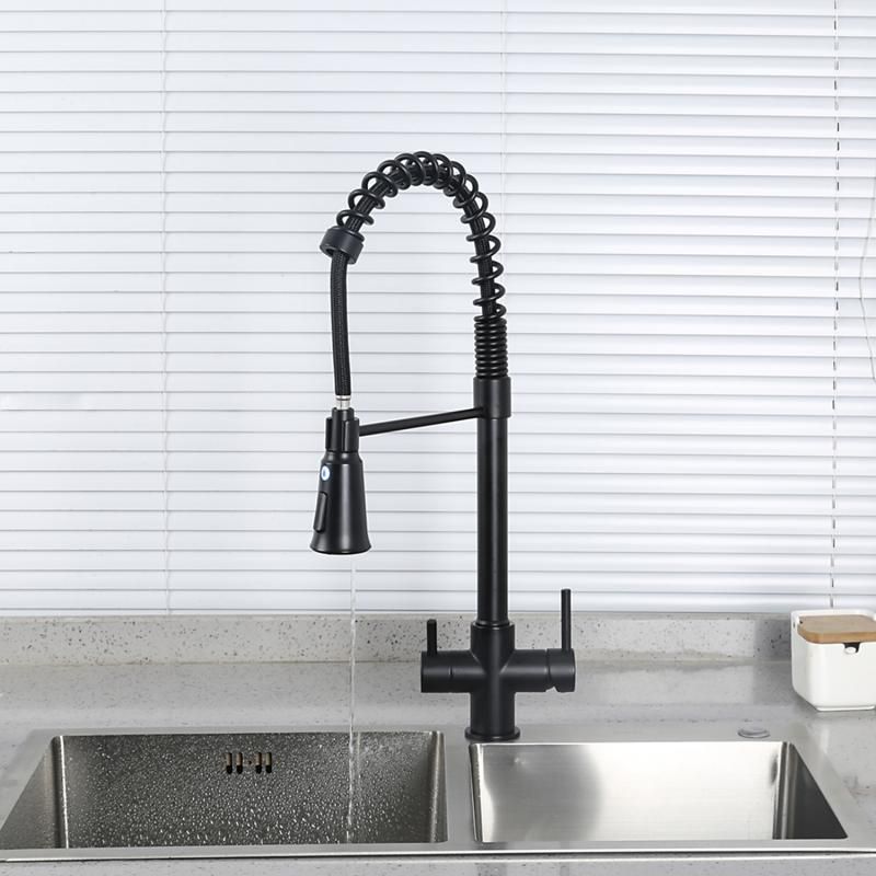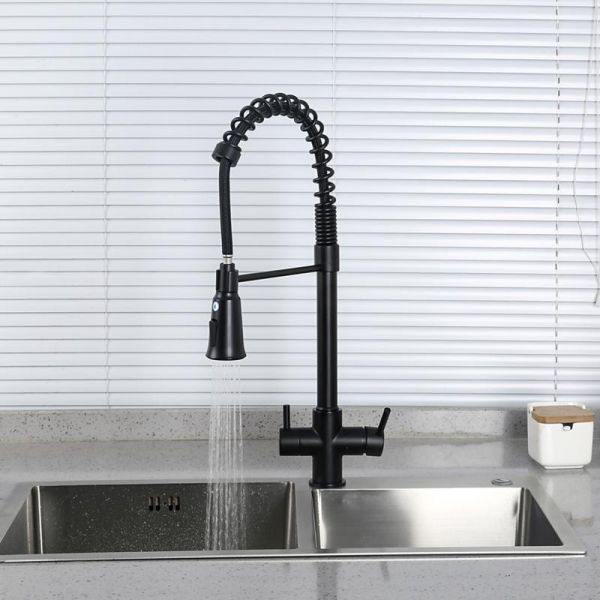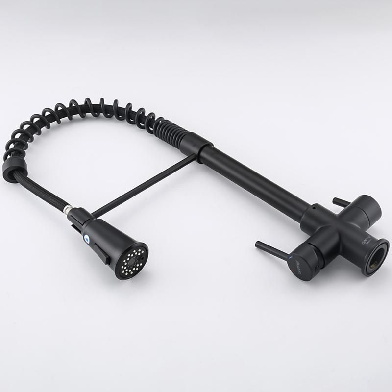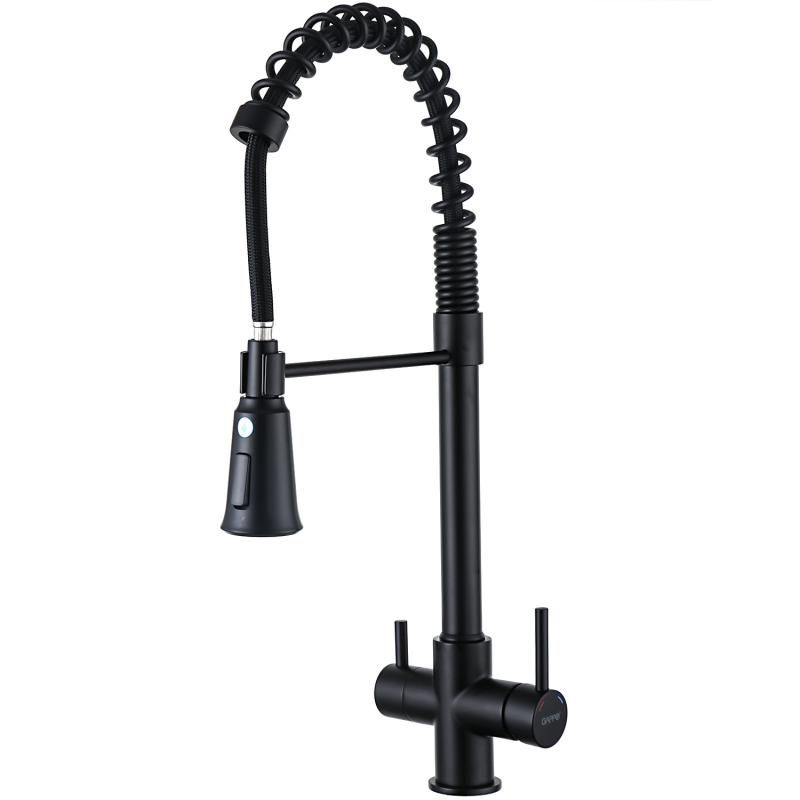 Смеситель для кухни 2 в 1 Gappo G4398-66 (черный), с пружиной и подключением к фильтру питьевой воды.