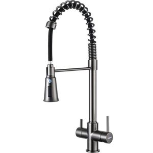 Смеситель для кухни Gappo G4398-69 с гибким выдвижным изливом и подключением фильтра питьевой воды оружейная сталь
